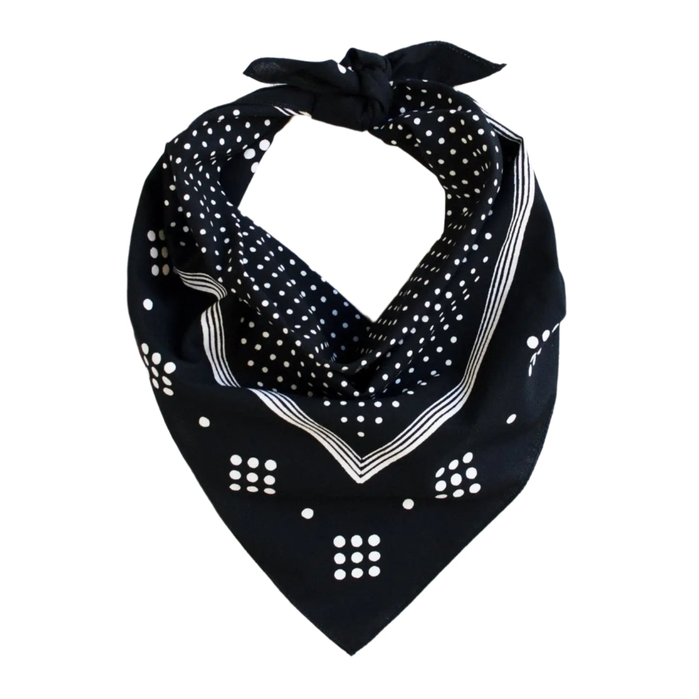 A screen printed bandana that can be worn in your hair, or used as a napkin, or tied onto your favourite bag.