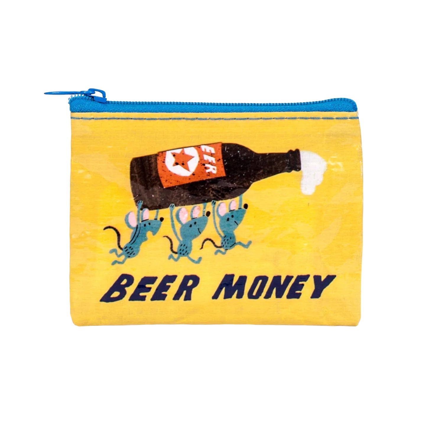 A small purse made from 95% post consumer recycled material, designed by Blue Q, US. Perfectly sized to carry coins, cards or small toiletries, vitamins etc... 10.16 cm X 6.62 cm. Alternative designs available.