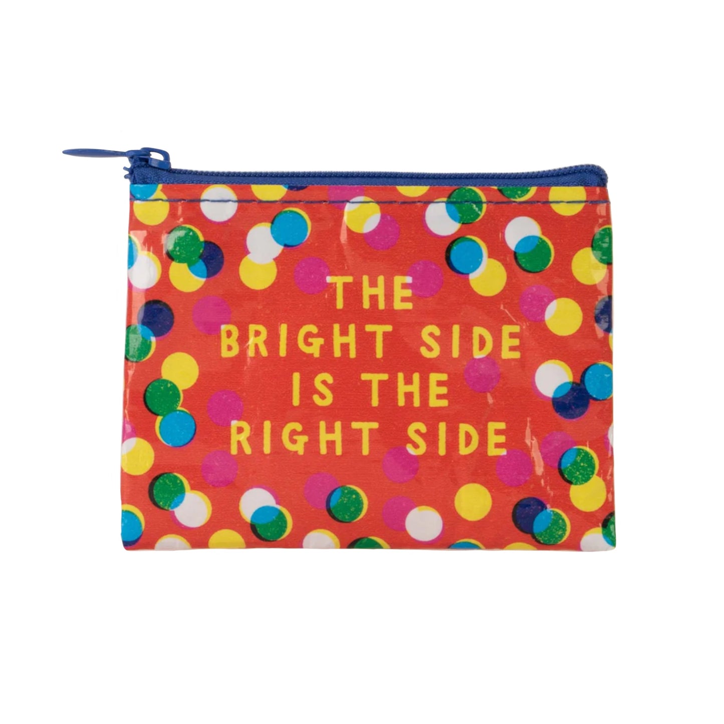 A small purse made from 95% post consumer recycled material, designed by Blue Q, US. Perfectly sized to carry coins, cards or small toiletries, vitamins etc... 10.16 cm X 6.62 cm. Alternative designs available.