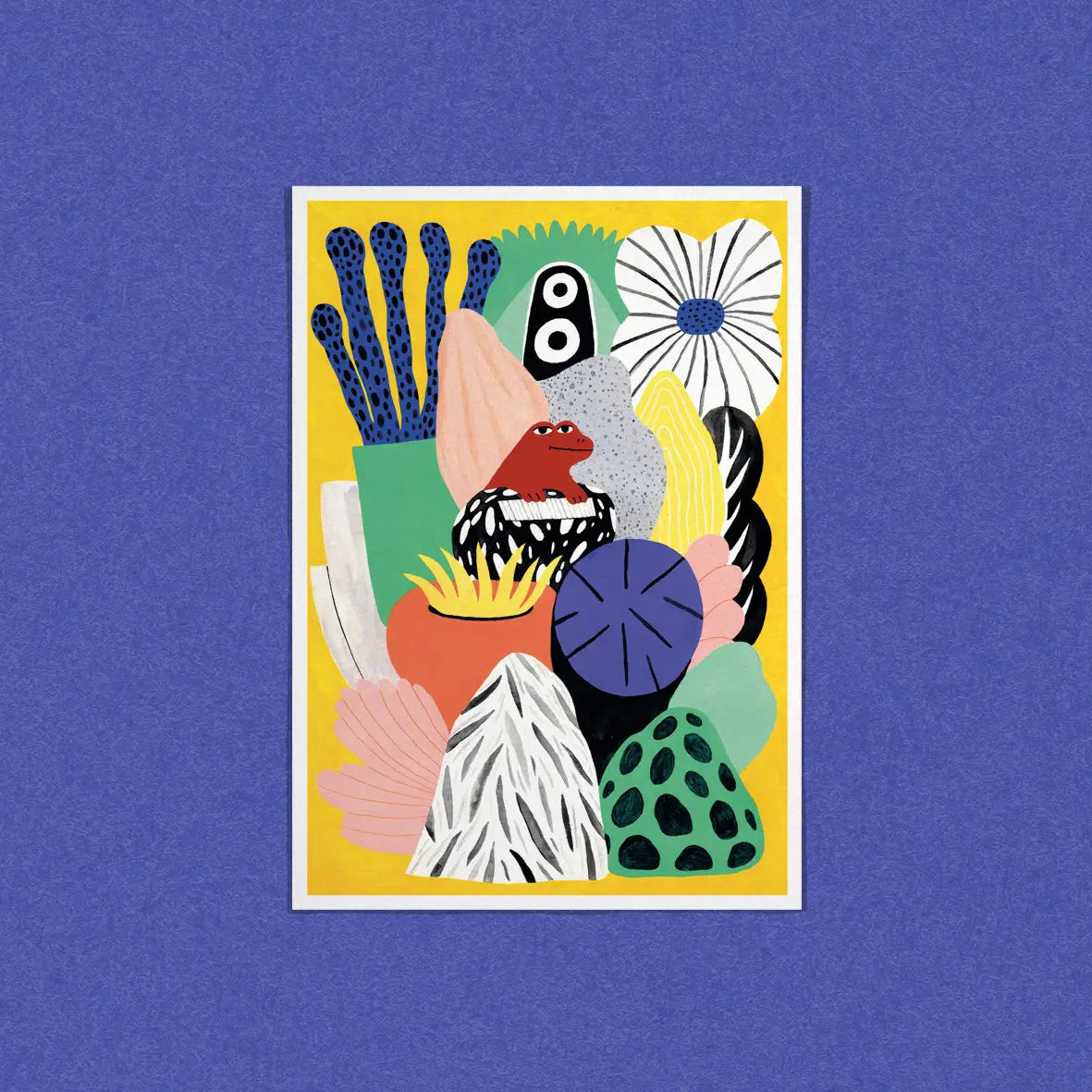 A printed postcard featuring an illustration by Dans Les Dents, France. Measuring 10.5cm x 14.8 cm, blank on reverse side and supplied without envelope.