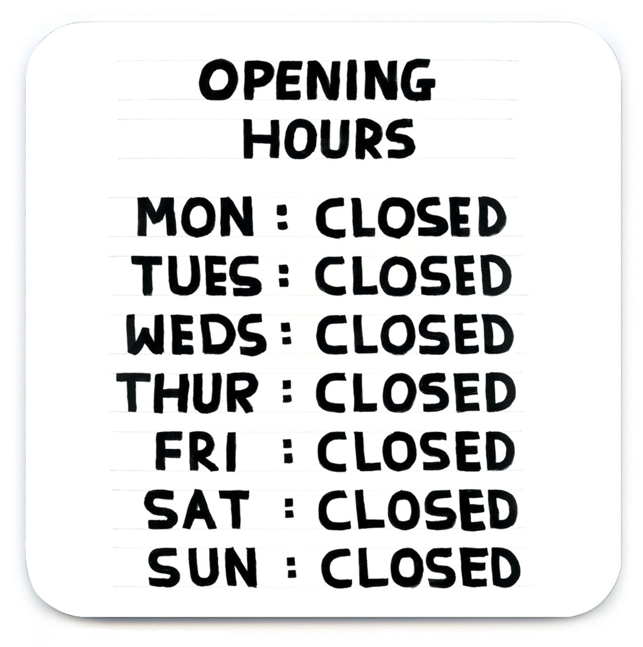 DAVID SHRIGLEY Opening Hours Coaster