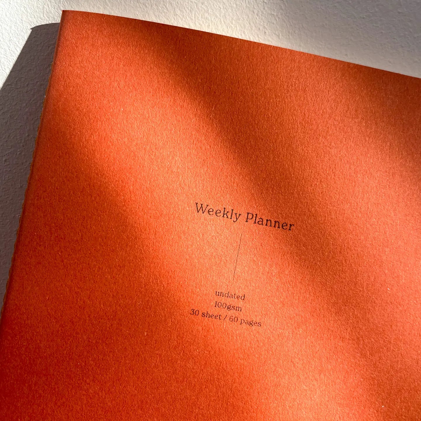 A soft cover, open dated planner designed by Fin Studio, UK. Measuring 14.8cm x 21cm with 60 smooth ivory coloured pages inside. Bound together by stitch.