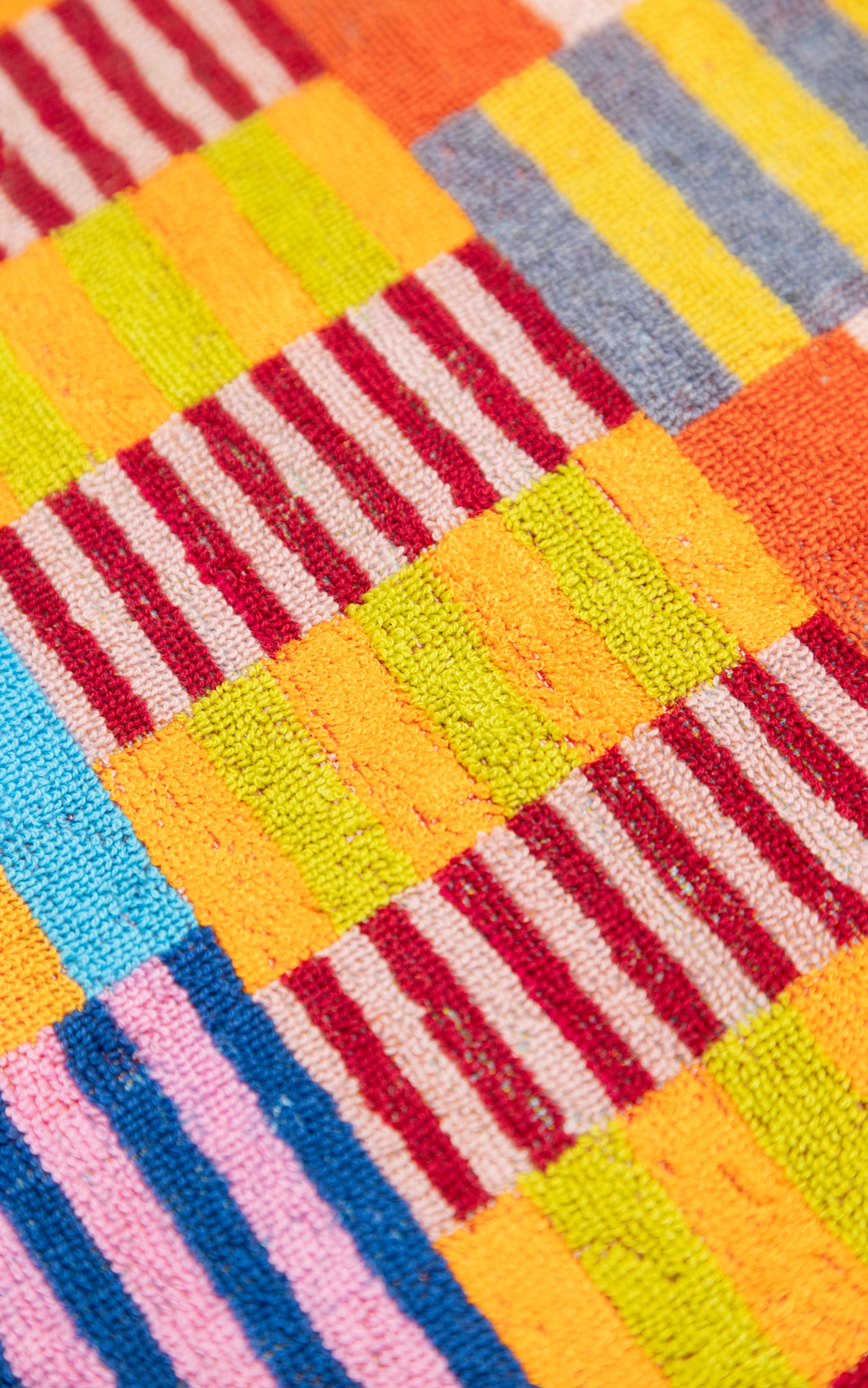 A 100% cotton, heavier weight towel designed by Foekje Fleur, NL. Measuring 90cm x 180cm, it's woven from left over dyed yarns, remnants from larger textile production in Portugal. The project is known as Odds & Ends, the small loop on each towel enables hanging.