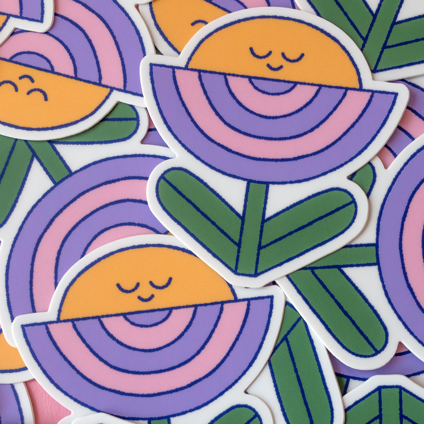 Flower sticker by artist Hello Vonnie, NL. Made with thick, durable vinyl which protects your stickers from scratches, water and sunlight. The sticker is 7 cm x 7.6 cm (2.36 inches x 2.95 inches).