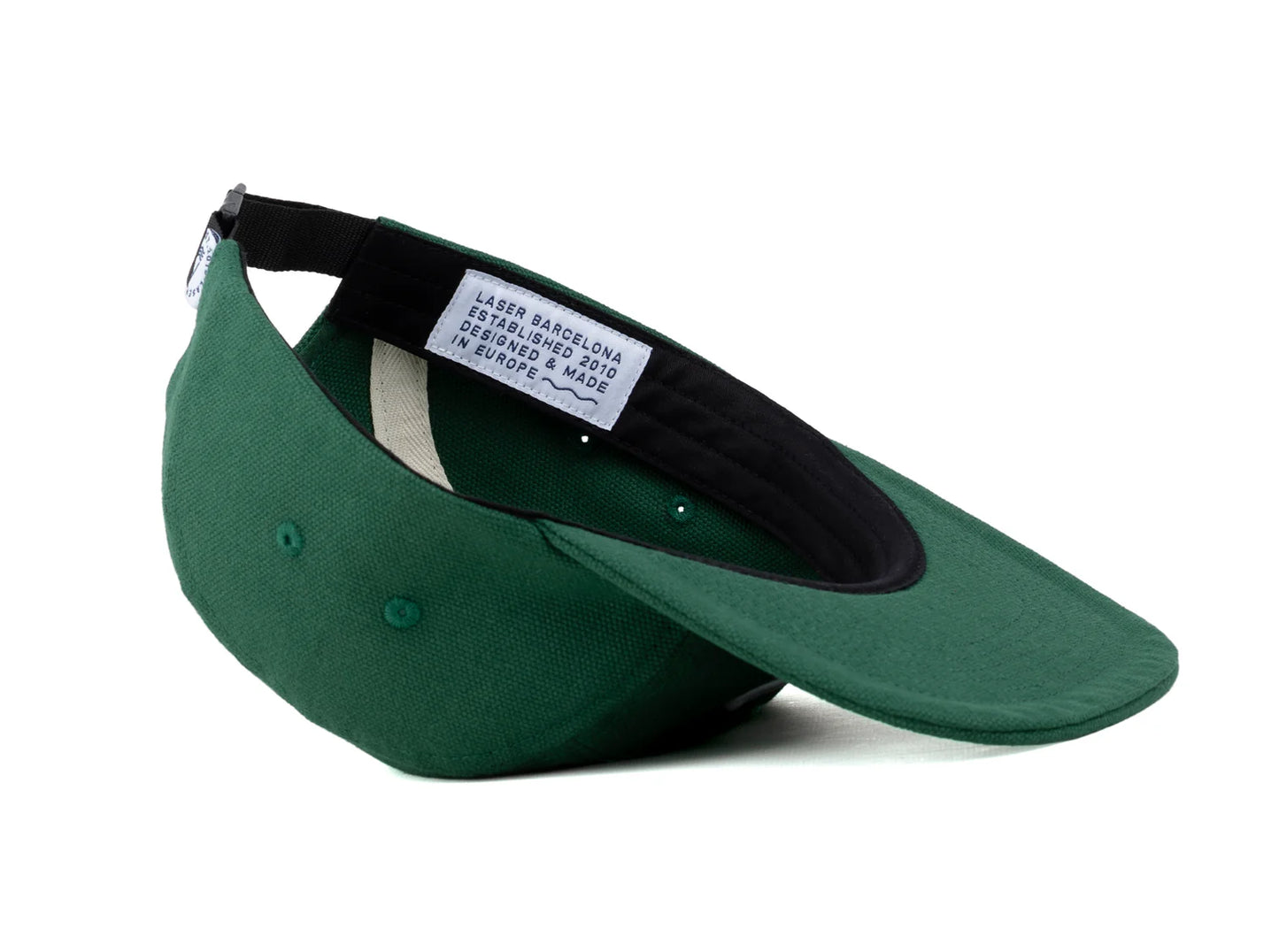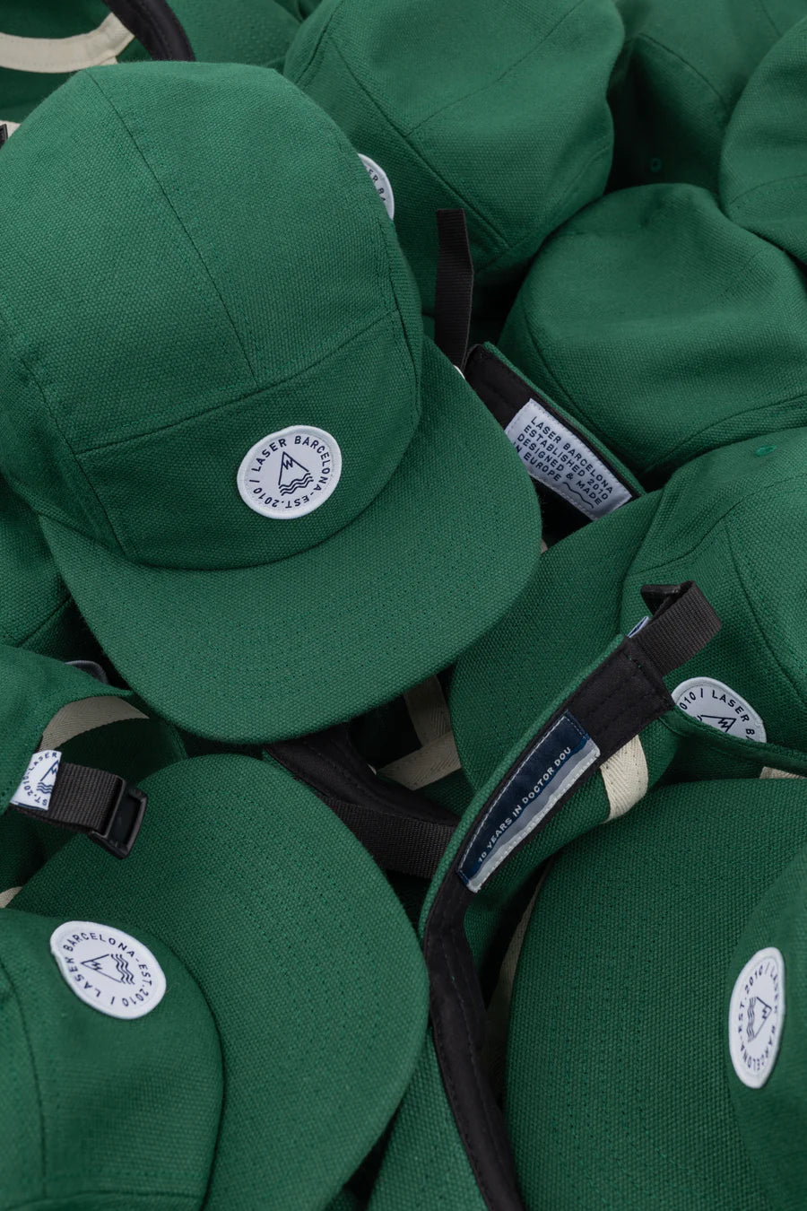 A cap consisting of 5 panels and an embroidered label designed by Laser Barcelona. Handmade in Portugal from 100% Spanish cotton with a foldable brim.