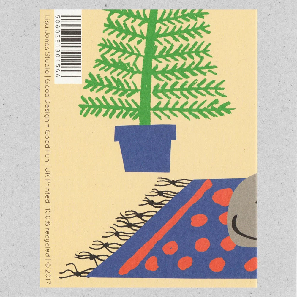 An offset printed card designed by Lisa Jones Studio, UK. Measuring 9cm x 11.5cm, card is blank inside with a white envelope.