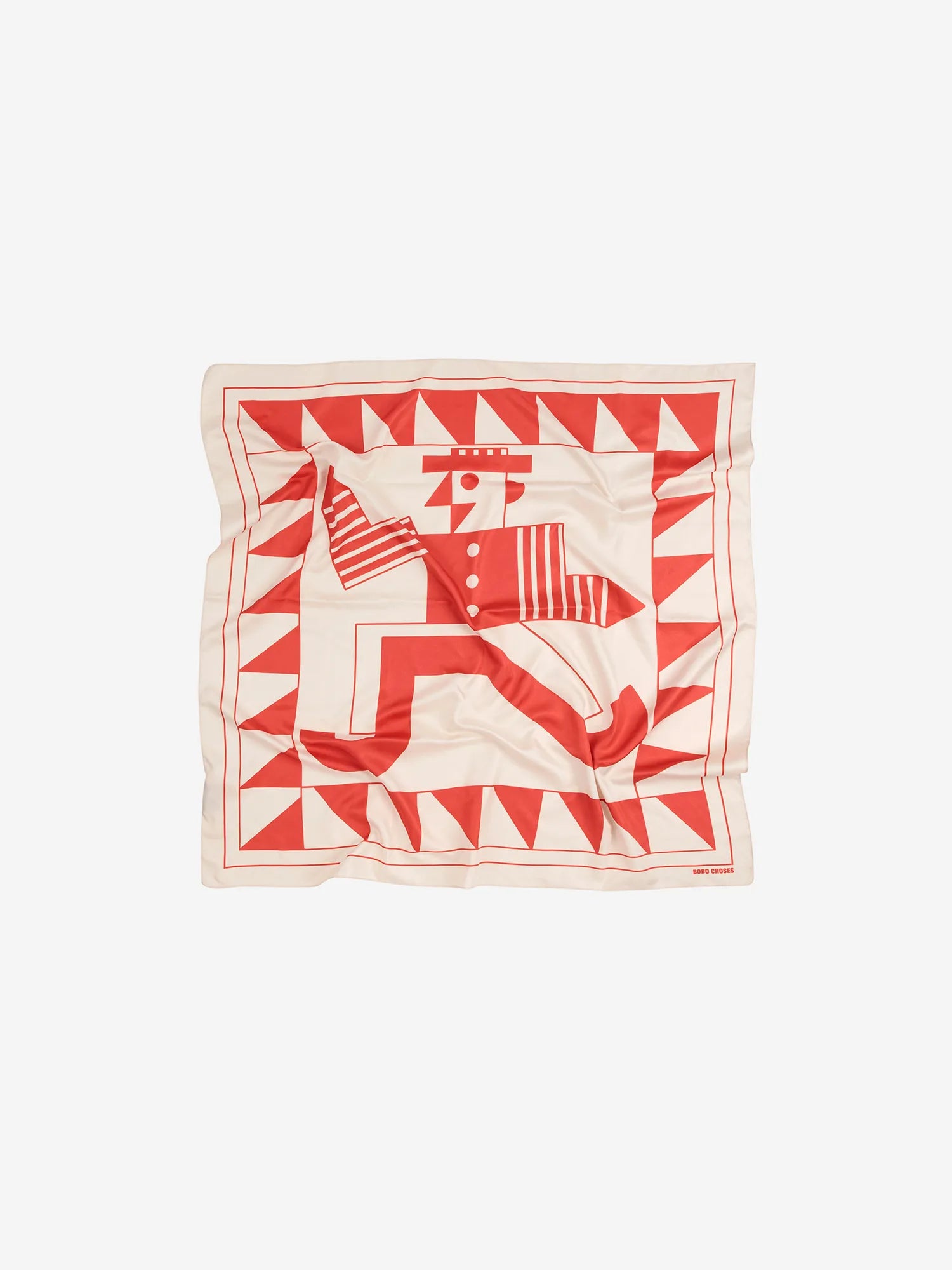 Square shaped, lightweight fabric, printed scarf designed by Bobo Choses, Spain.