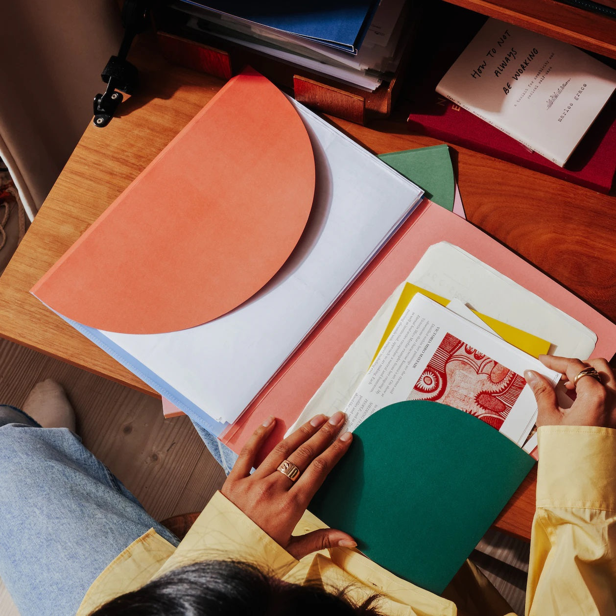 A set of two storage folders. Perfect for your loose pages, documents or receipts. Designed to hold A4 sized paper.