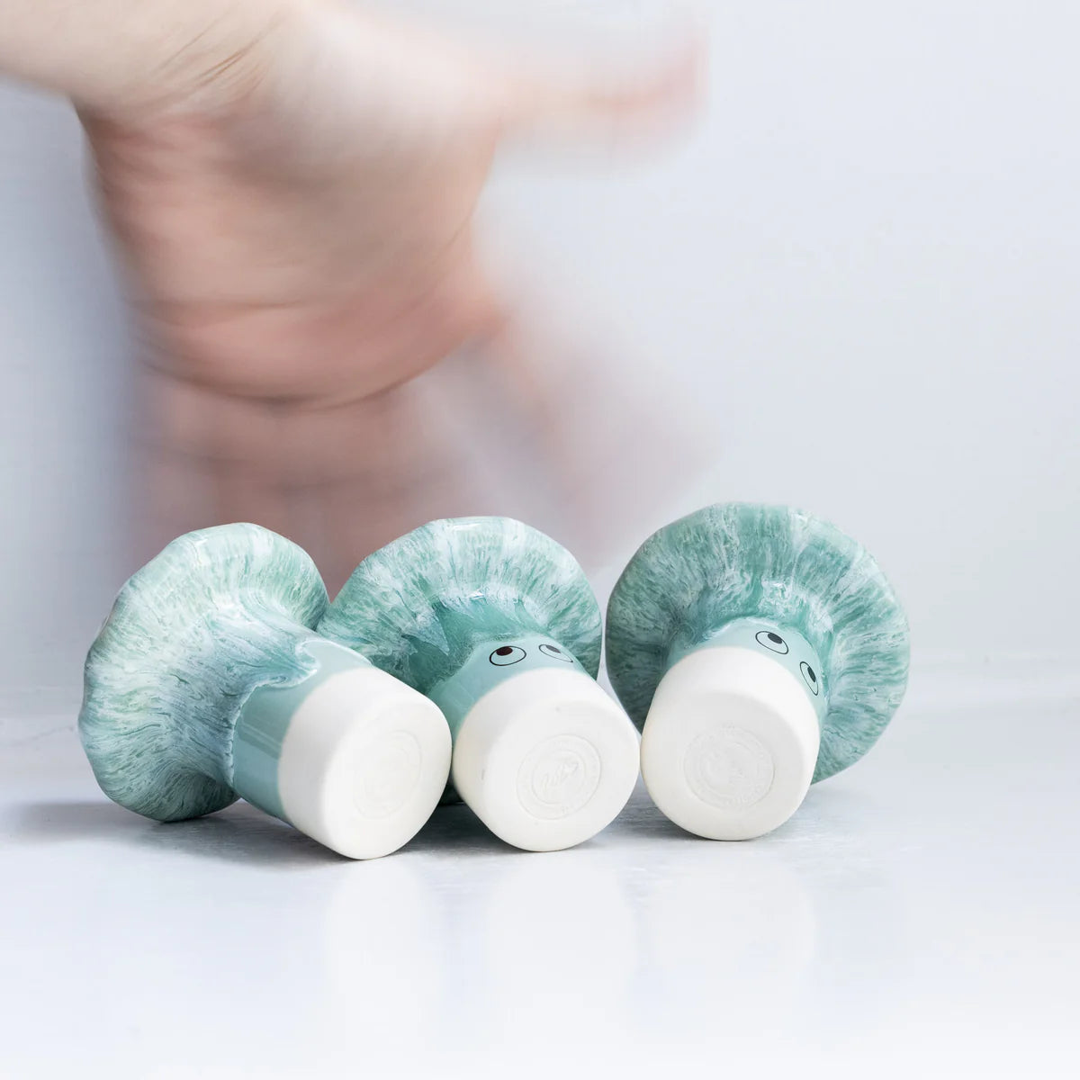 Each piece is unique and hand-cast in solid, heavy white porcelain. The figurines are glazed in our wide variety of unique hi-fire colours and given life with a pair of eyes.