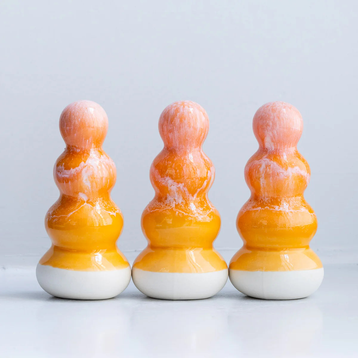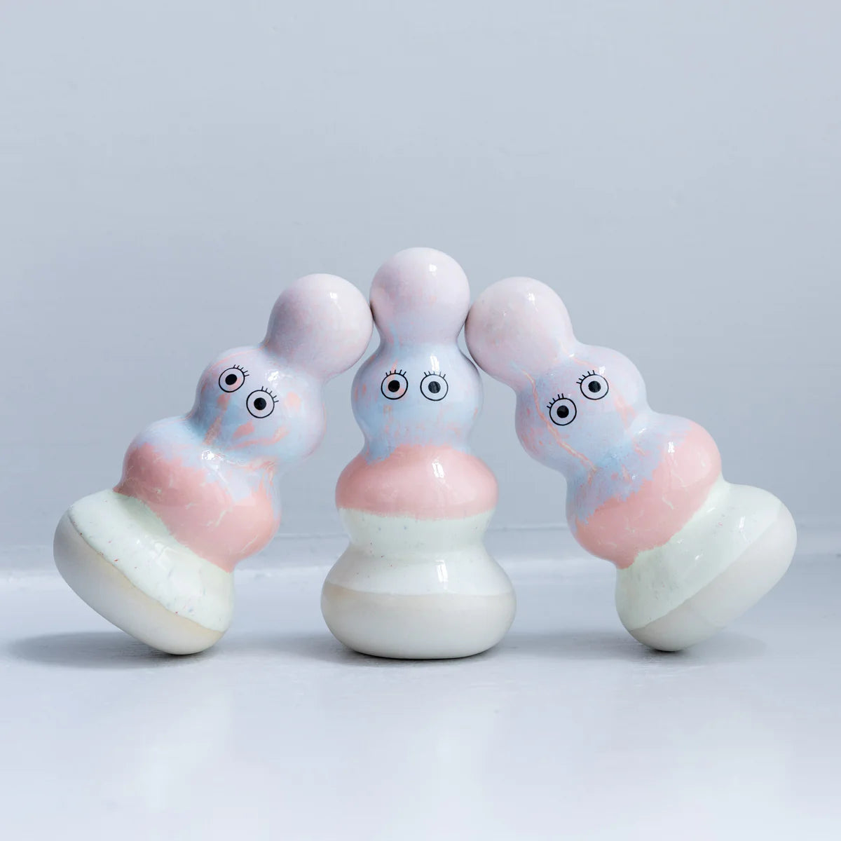 Each piece is unique and hand-cast in solid, heavy white porcelain. The figurines are glazed in our wide variety of unique hi-fire colours and given life with a pair of eyes.