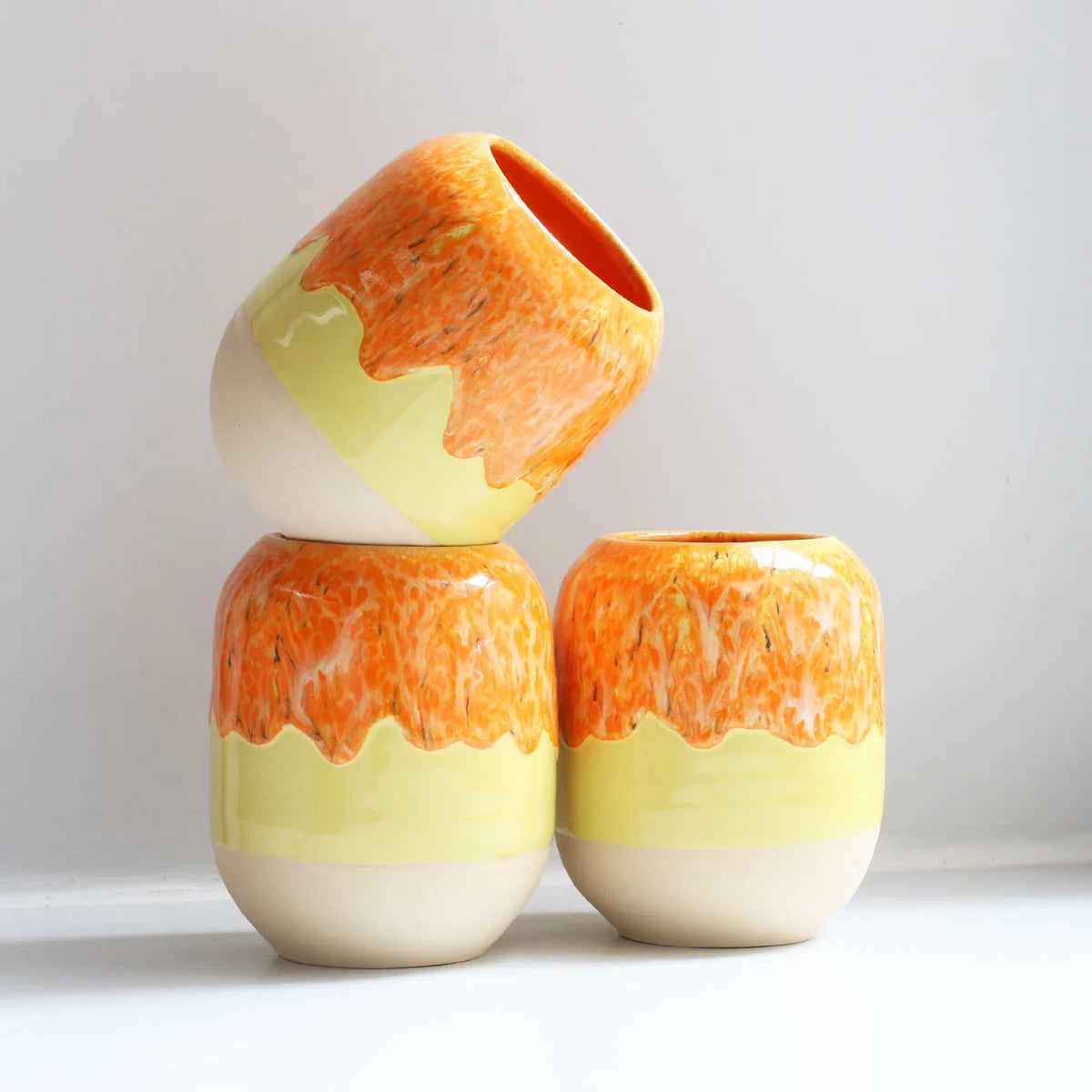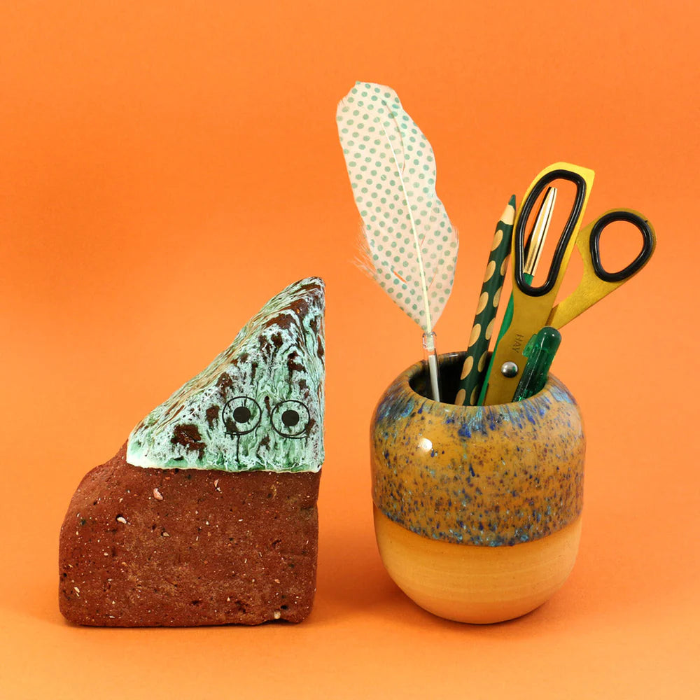 The Pen is hand-thrown in earthenware and dipped in various glazes before being fired. It's great for storing paint brushes, pens or even tooth brushes on your desk.