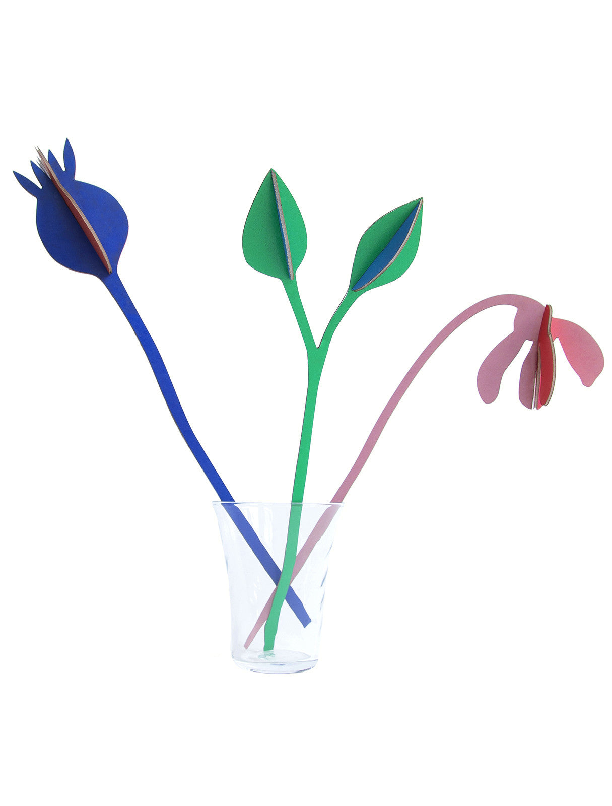 A set of 3 self-assembly flowers made from recycled cardboard printed with vegetable inks. Designed by Jantien Baas for Studio Roof NL, each flower measures approx. 8 x 8 x 27 cm when assembled. The set comes flat packed, 1 x A4 sheet with 6 pop-out motifs, clear instructions, all inside a cardboard wallet. Alternative designs available.