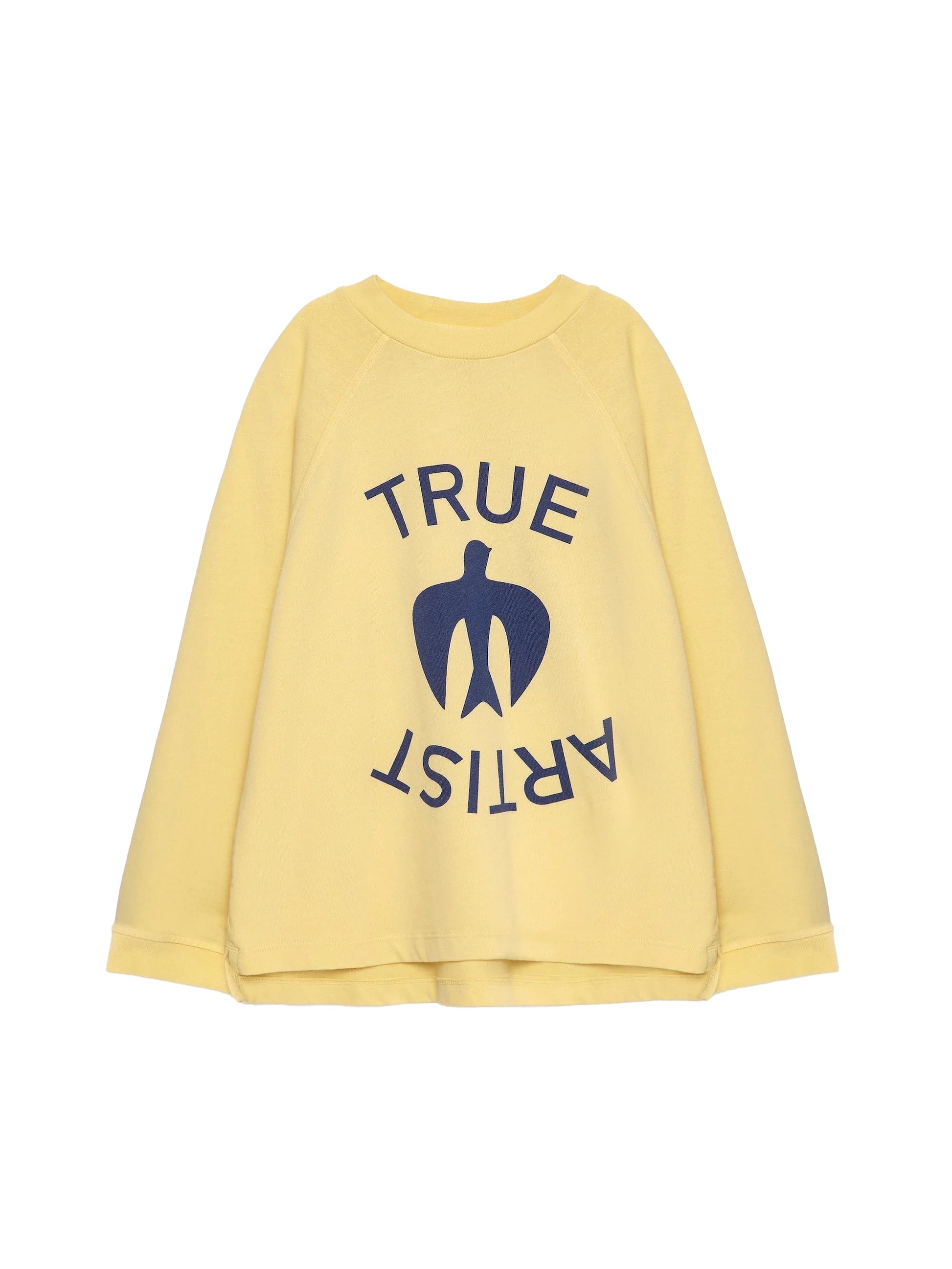 A relaxed fit, 100% organic cotton t-shirt designed and made by True Artist Spain. The style has raglan sleeves and fine ribbed neck and cuffs. Featuring screen printed branding on the front.