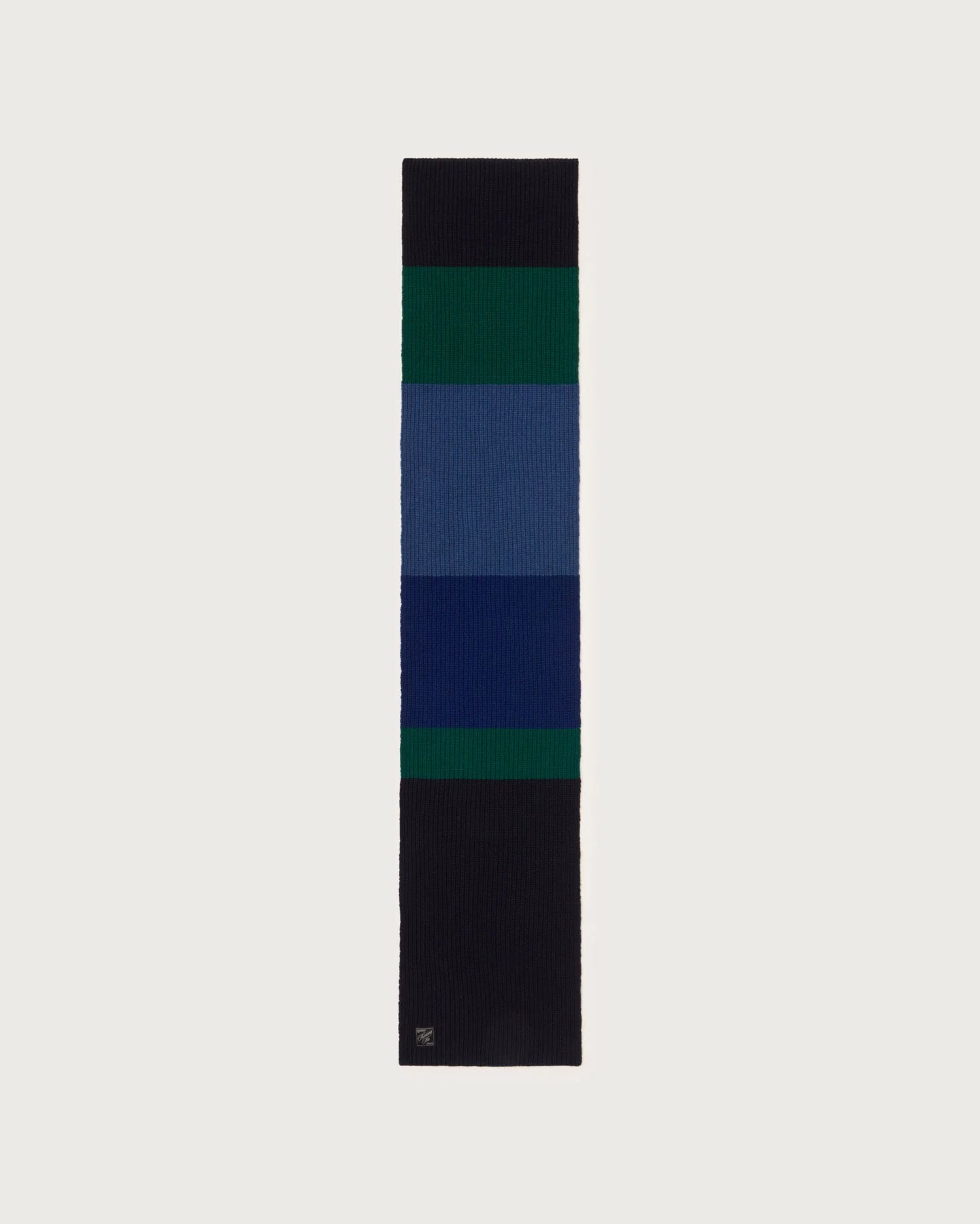 An extra long scarf designed by Thinking Mu, Spain. Knitted from 100% extra fine wool, and featuring four different colours. Approx. 180cm in length.