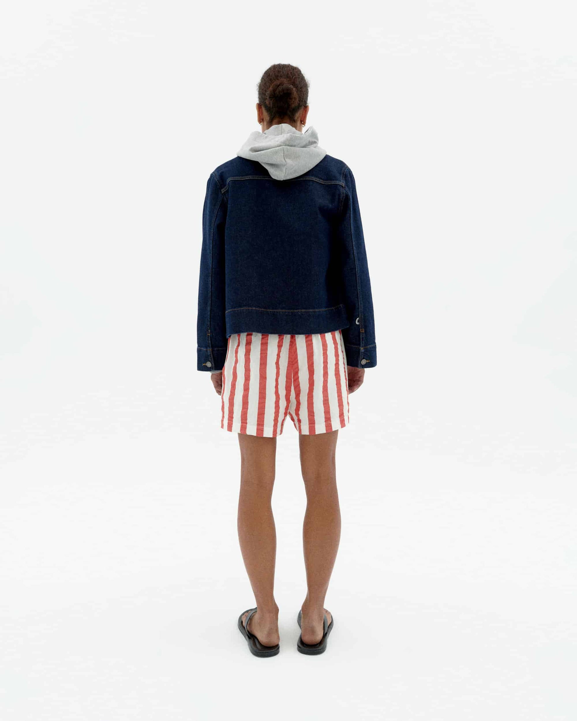 Organic cotton shorts designed by Thinking Mu, Spain. Featuring printed stripes.