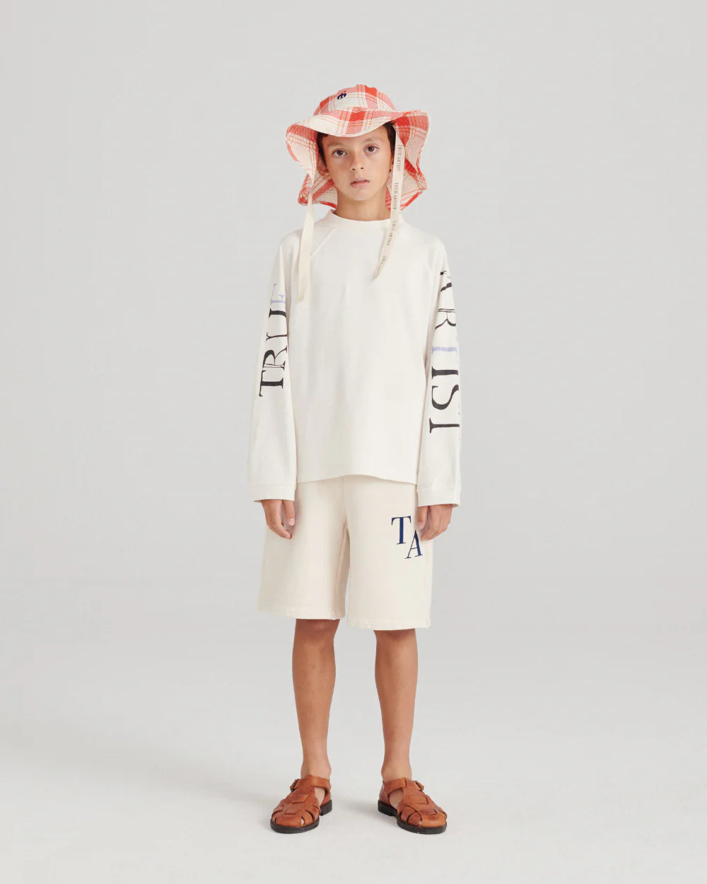 A cotton hat, designed and woven with dyed yarn by True Artist Spain. The style has a wide brim, and two branded ties to keep it securely in place. Featuring an embroidered variation of the brand's bird logo.