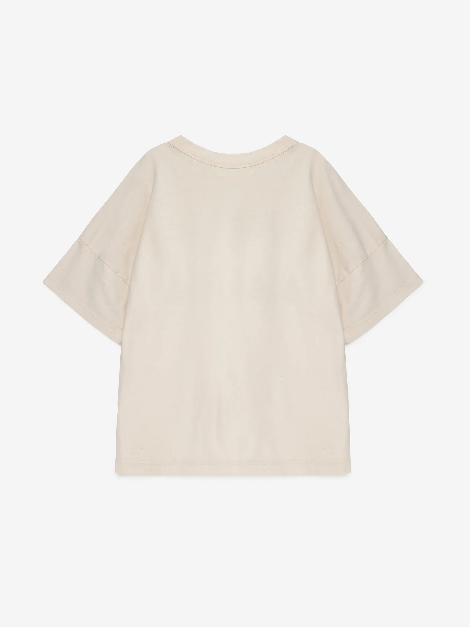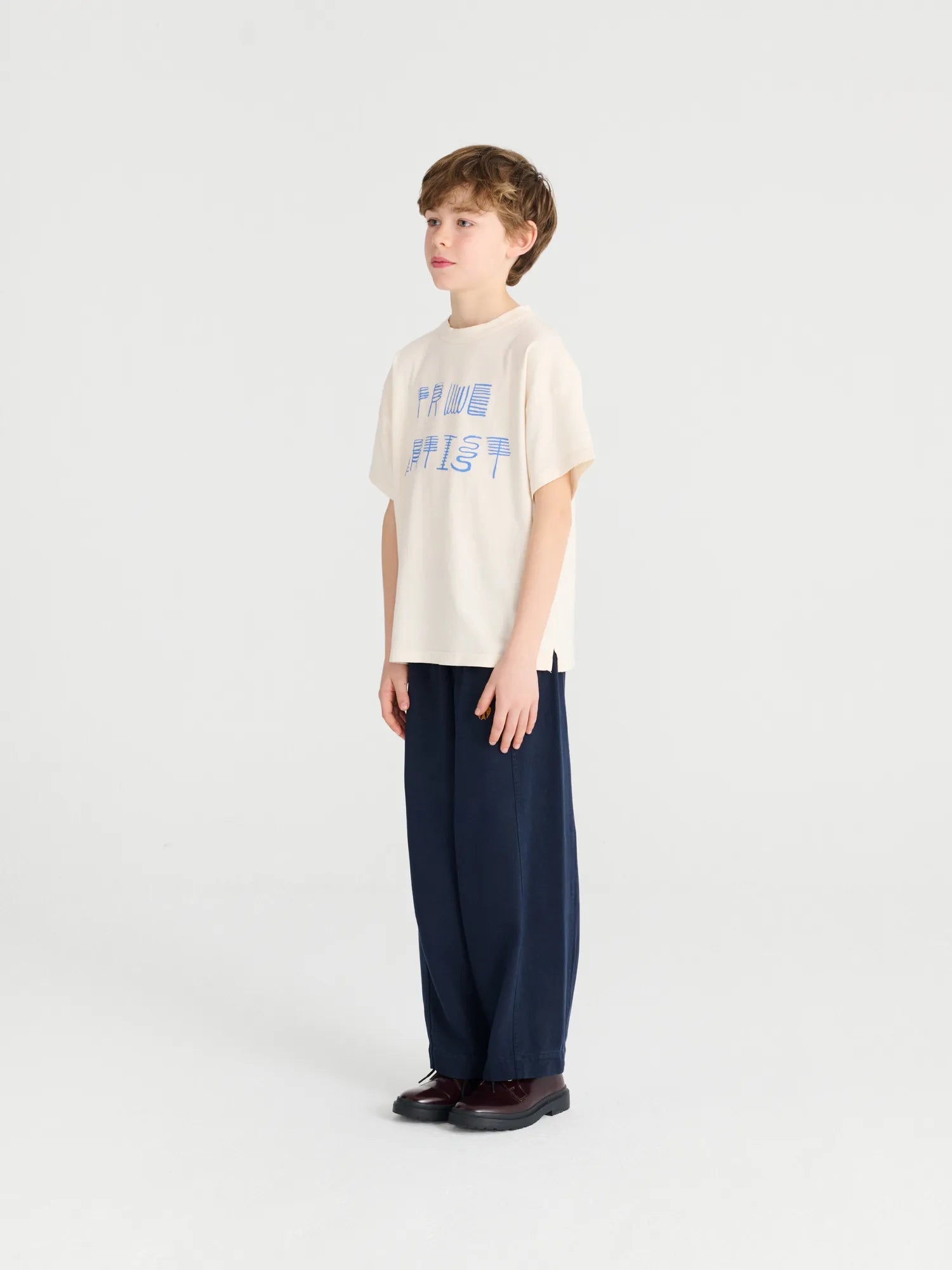 A boxy fit, 100% organic cotton t-shirt designed and made by True Artist Spain. The style has dropped shoulders seams and features a screen print on the front.